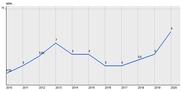 4.33 млн. руб, а в 2020 году - 8 млн. руб. Таким образом, средняя стоимость двухкомнатных квартир в районе "Кузьминки" за