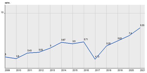 5 млн. руб, а в 2021 году - 8.33 млн. руб. Таким образом, средняя стоимость однокомнатных квартир в районе "" за