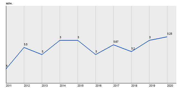 4 млн. руб, а в 2020 году - 6.25 млн. руб. Таким образом, средняя стоимость однокомнатных квартир в районе "Выхино-Жулебино" за