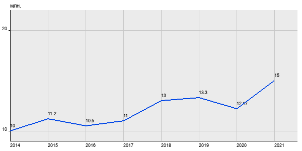10 млн. руб, а в 2021 году - 15 млн. руб. Таким образом, средняя стоимость четырёхкомнатных квартир в районе "" за