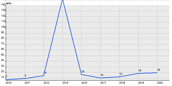 7 млн. руб, а в 2020 году - 19 млн. руб. Таким образом, средняя стоимость двухкомнатных квартир в районе "Басманный" за