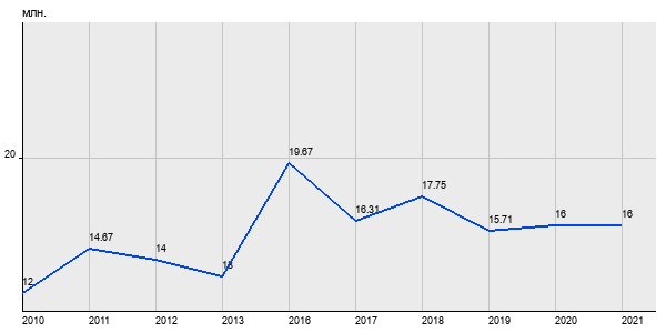 12 млн. руб, а в 2021 году - 16 млн. руб. Таким образом, средняя стоимость двухкомнатных квартир в районе "Басманный" за