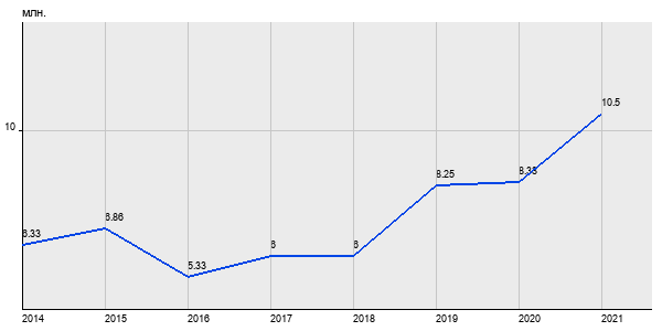 6.33 млн. руб, а в 2021 году - 10.5 млн. руб. Таким образом, средняя стоимость однокомнатных квартир в районе "Басманный" за