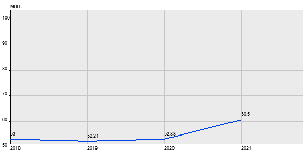 53 млн. руб, а в 2021 году - 60.5 млн. руб. Таким образом, средняя стоимость четырёхкомнатных квартир в районе "Обручевский" за
