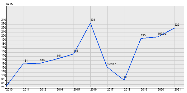 75 млн. руб, а в 2021 году - 222 млн. руб. Таким образом, средняя стоимость трёхкомнатных квартир в районе "Арбат" за