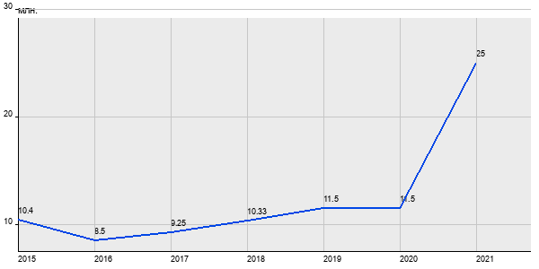 10.4 млн. руб, а в 2021 году - 25 млн. руб. Таким образом, средняя стоимость однокомнатных квартир в районе "Обручевский" за
