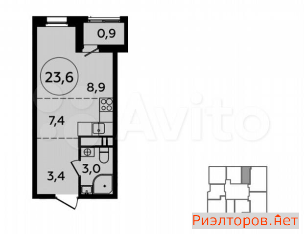 Общая площадь 23.6 м