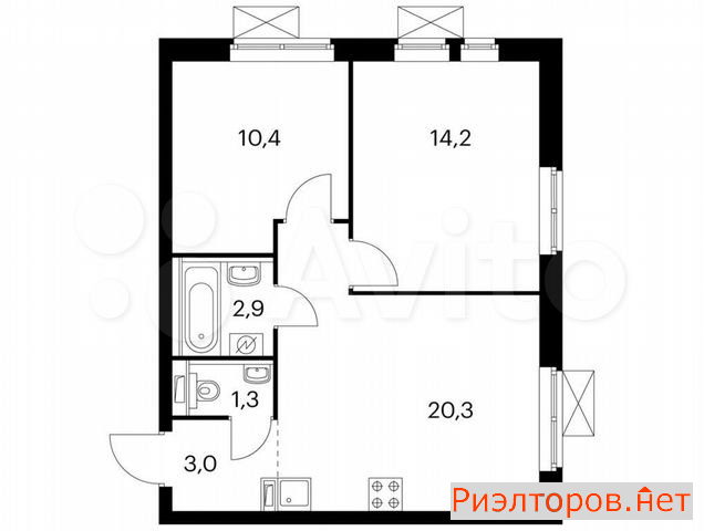 Общая площадь 57.9 м