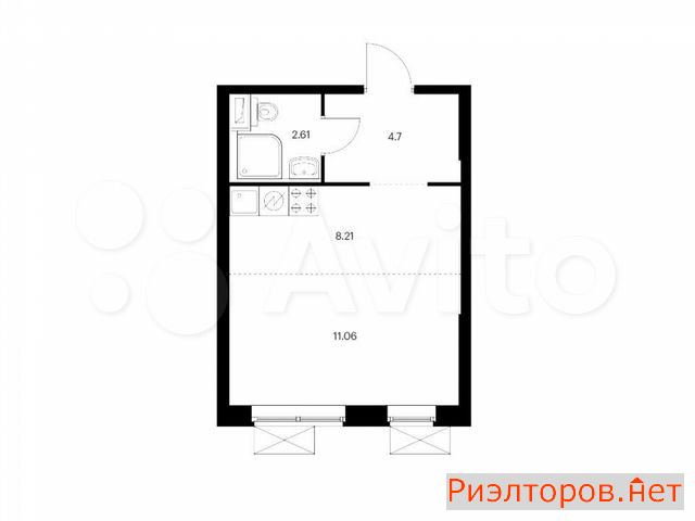 Общая площадь 26.6 м