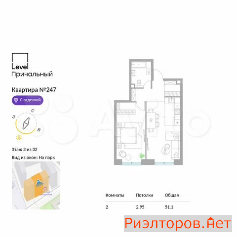 Общая площадь 51.0 м