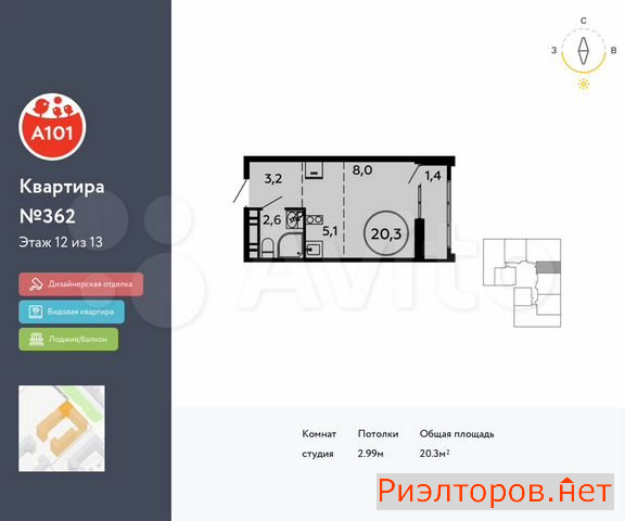 Общая площадь 20.3 м