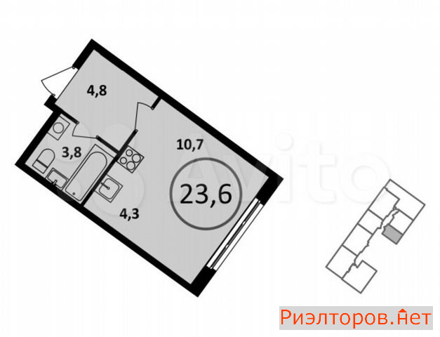 Общая площадь 23.6 м