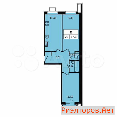 Общая площадь 57.8 м