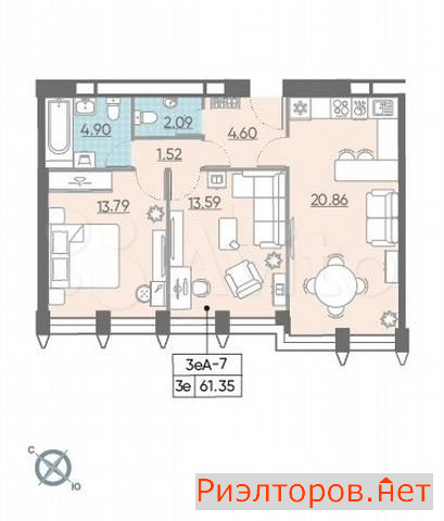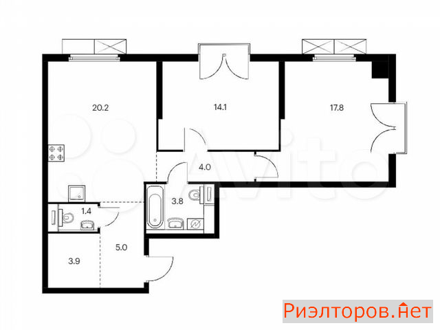 Общая площадь 19.8 м