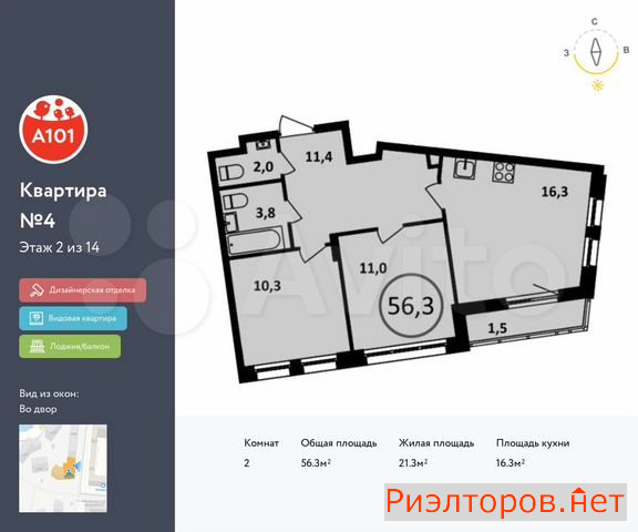 Общая площадь 56.0 м