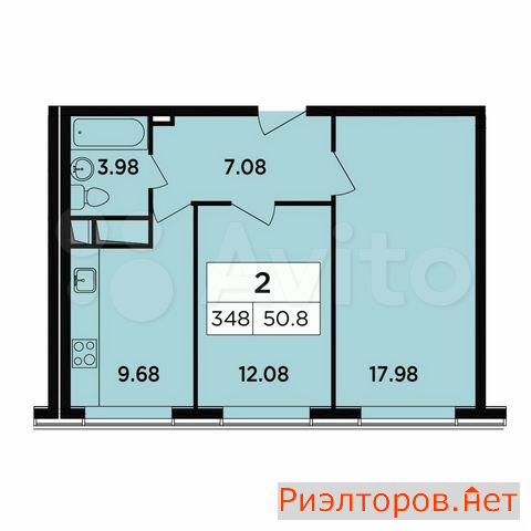 Общая площадь 50.8 м