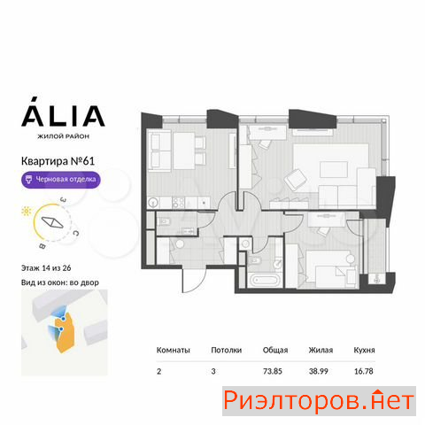 Общая площадь 73.0 м