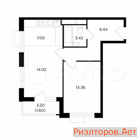 Общая площадь 44.0 м