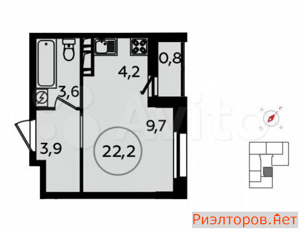 Общая площадь 22.2 м