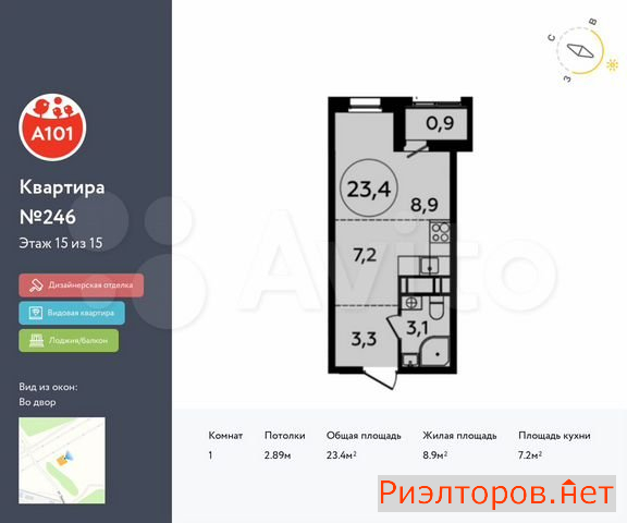 Общая площадь 23.4 м