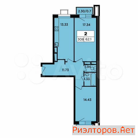 Общая площадь 62.1 м