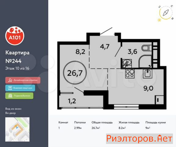 Общая площадь 26.7 м