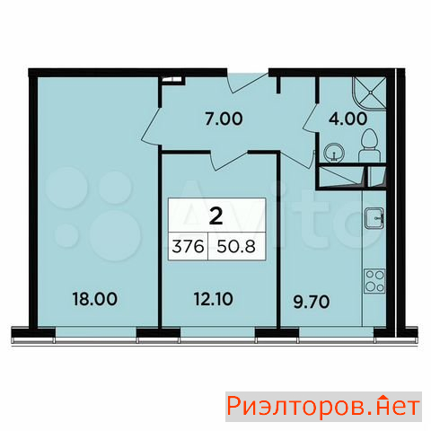 Общая площадь 50.8 м