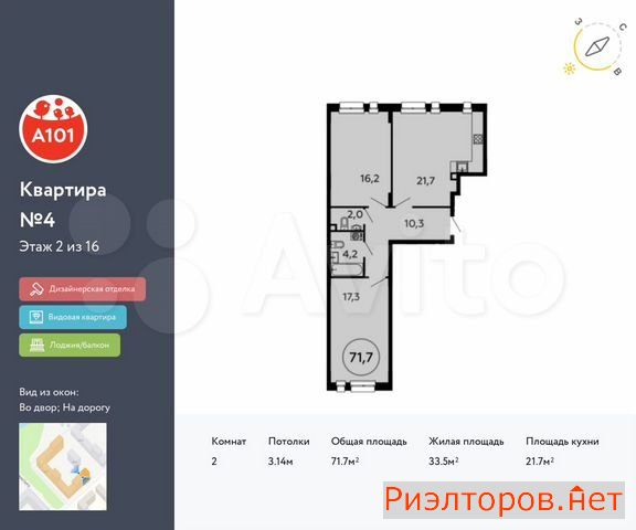 Общая площадь 34.1 м