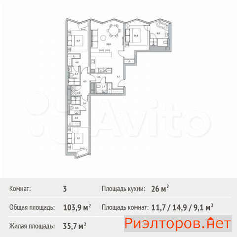 Общая площадь 105.0 м