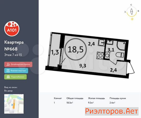 Общая площадь 18.5 м
