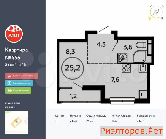 Общая площадь 25.2 м