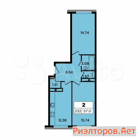 Общая площадь 57.0 м