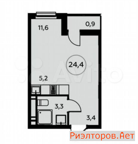 Общая площадь 24.4 м