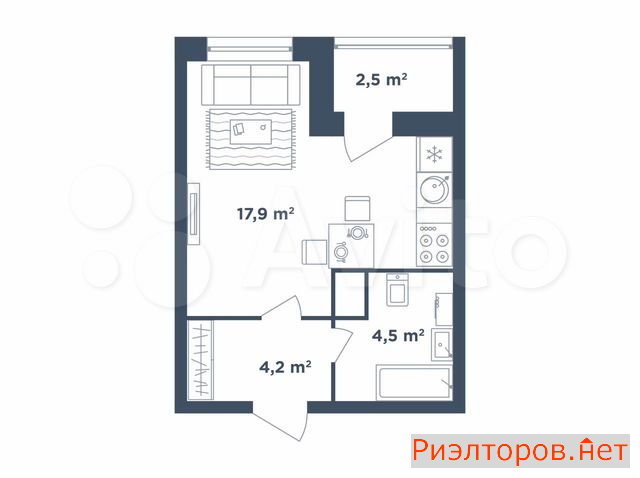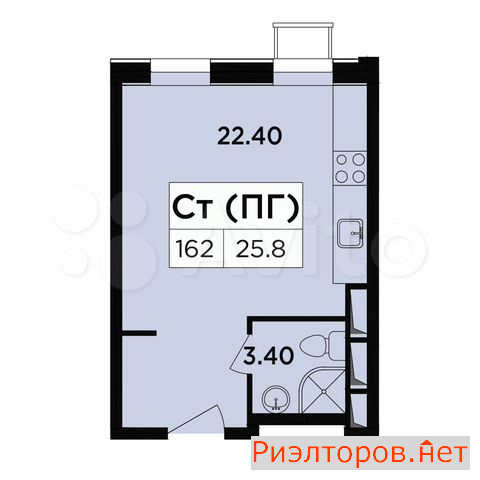 Общая площадь 25.8 м