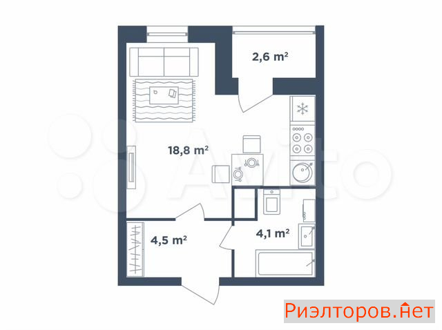 Общая площадь 28.6 м