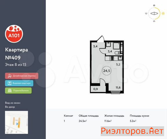 Общая площадь 24.5 м
