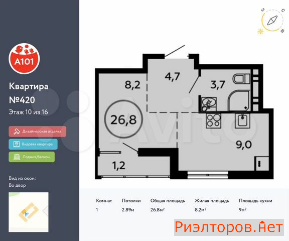 Общая площадь 26.8 м