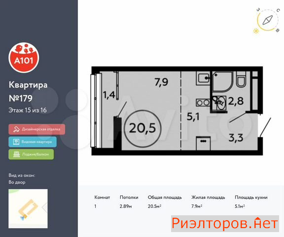 Общая площадь 20.5 м