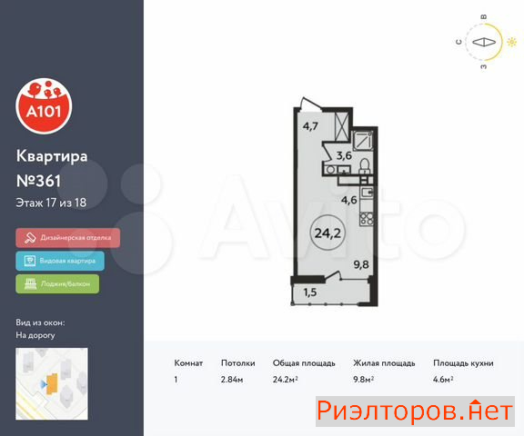 Общая площадь 24.2 м