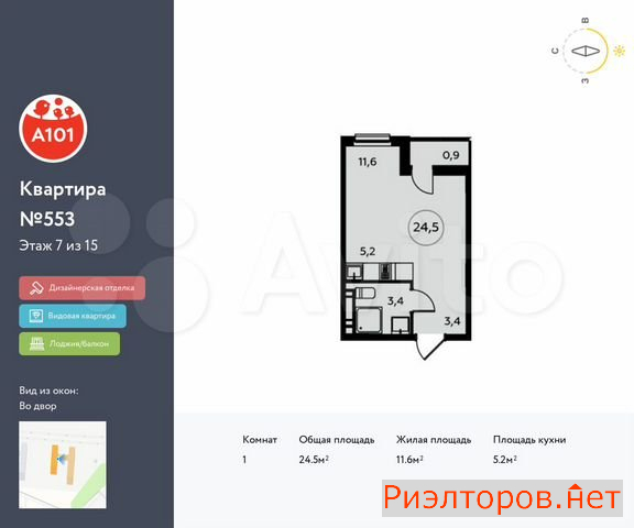 Общая площадь 24.5 м