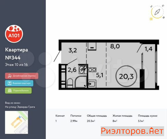 Общая площадь 20.3 м