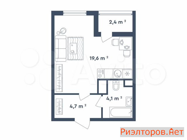 Общая площадь 29.6 м