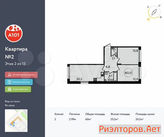 Общая площадь 60.0 м
