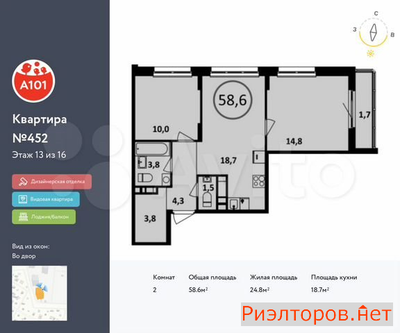Общая площадь 18.5 м