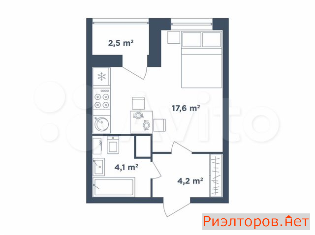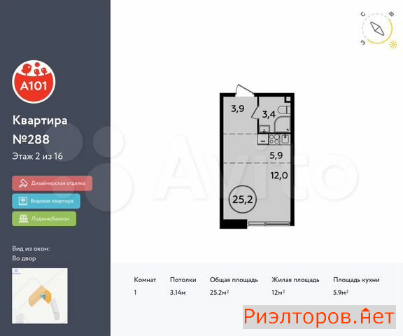 Общая площадь 25.2 м