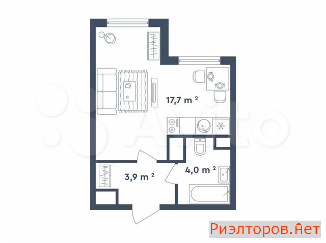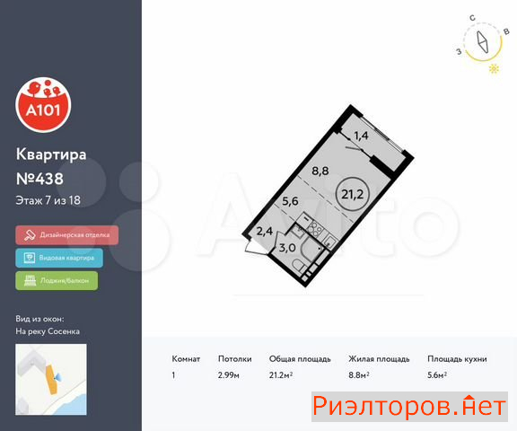 Общая площадь 21.2 м