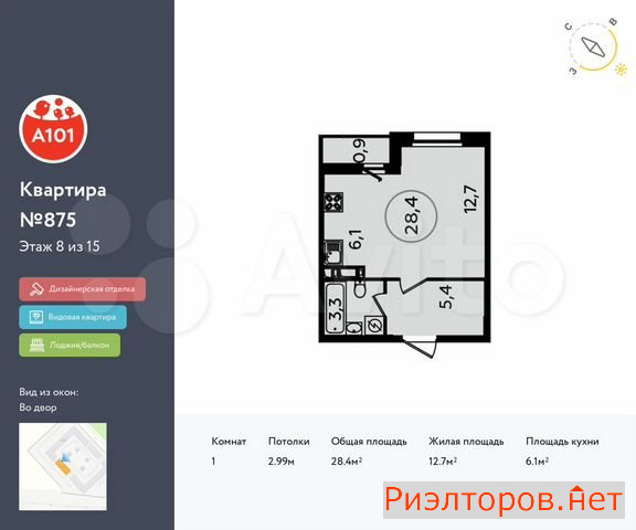 Общая площадь 28.4 м