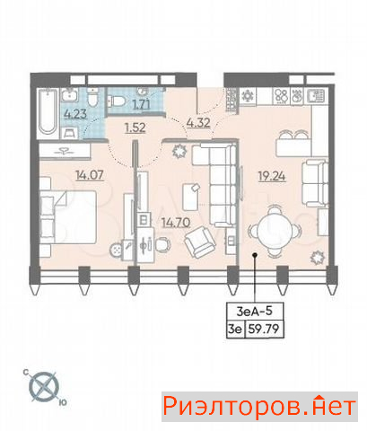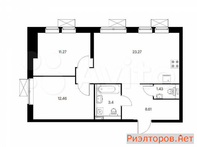 Общая площадь 57.0 м