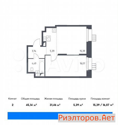 Общая площадь 45.1 м
