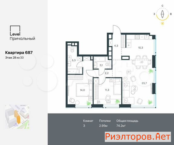 Общая площадь 100.3 м